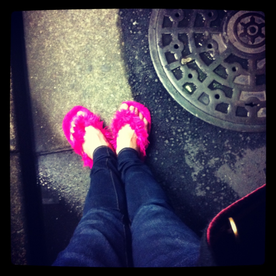 ショッキングピンクのケバいサンダルなんです笑