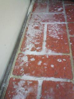 っておい!玄関前を掃除した汚水で、玄関を汚しているではないか。自分の靴じゃない足跡がおもいっきりついているではないか。